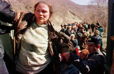 vrouwen en kinderen naar een leegstaand schoolgebouw in Kacanik. FOTO: AP