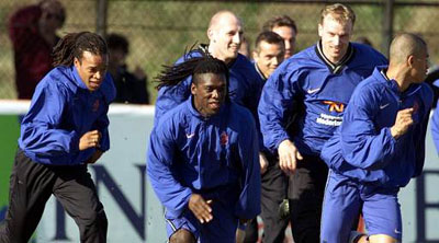 Slechts bij Jaap Stam stak de kleur van z'n benen en gezicht schril