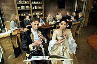 de koffie worden we verwelkomd met muziek van een barokensemble.