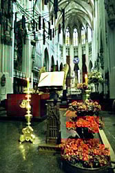 Deze gotische kerk is 115 meter lang, 62 meter breed, in het middenschip