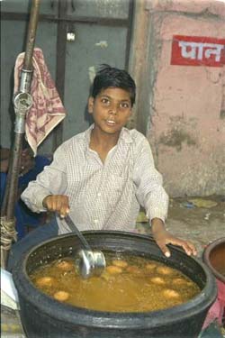 Onze gids Praveen een verteller pur sang rolt even met zijn ogen. Dàt hadden we nou net niet moeten zien. Een man steekt zijn niet echt propere arm tot aan zijn ellebogen in een melkbus om wrijvend tussen zijn vingers het vetgehalte te bepalen. Om het witte spul vervolgens aan te lengen met smoezelig water. "Ook dat is India," zegt hij gelaten. Onze koffie? Die besluiten we voortaan maar zwart te drinken...