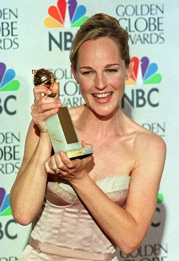 Hunt houdt hier haar Golden Globe Award omhoog, de prijs werd haar